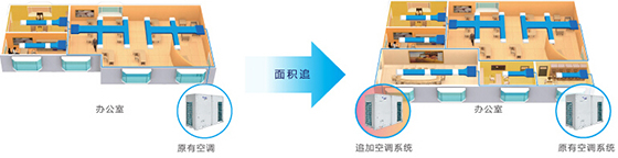 業(yè)界獨(dú)有的78.5KW、90KW獨(dú)立變頻多聯(lián)機(jī)組,極大滿足辦公區(qū)域、酒店等大冷量需求場(chǎng)所
