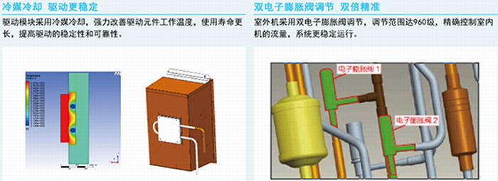 機(jī)組在最常用的制熱外環(huán)境溫度0~20攝氏度范圍內(nèi)可以實(shí)現(xiàn)制熱不換向回油,制熱室內(nèi)環(huán)境溫度更穩(wěn)定,避免忽冷忽熱