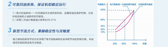 格力獨(dú)創(chuàng)的新型節(jié)流方式采用了電子膨脹閥和孔板并聯(lián)節(jié)流的控制方案,有效保證機(jī)組的穩(wěn)定性與靈敏度。