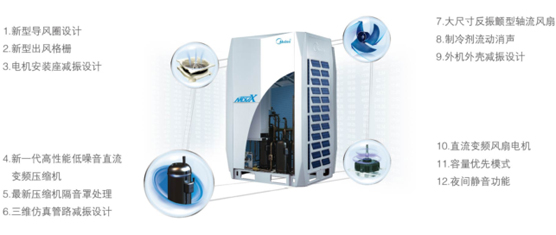 利用CFD、FEM等先進技術對空調系統的元器件振動源進行優化,實現靜音運轉,夜間運行模式把噪音降低到最低。
