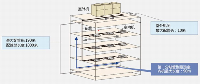 最大當(dāng)量單管長(zhǎng)度可達(dá)190米,總管長(zhǎng)度可達(dá)到1000米,系統(tǒng)設(shè)計(jì)更靈活方便。