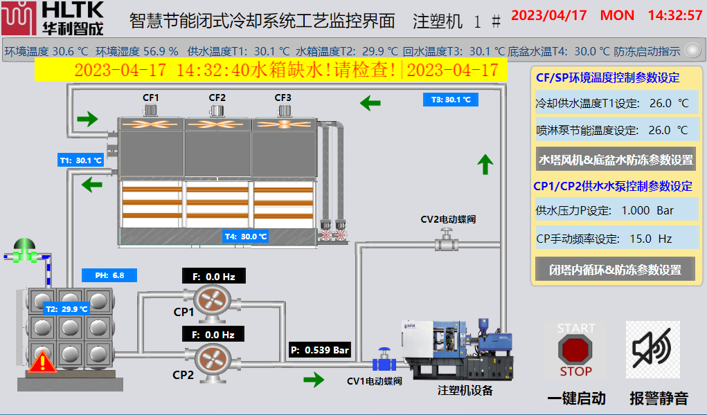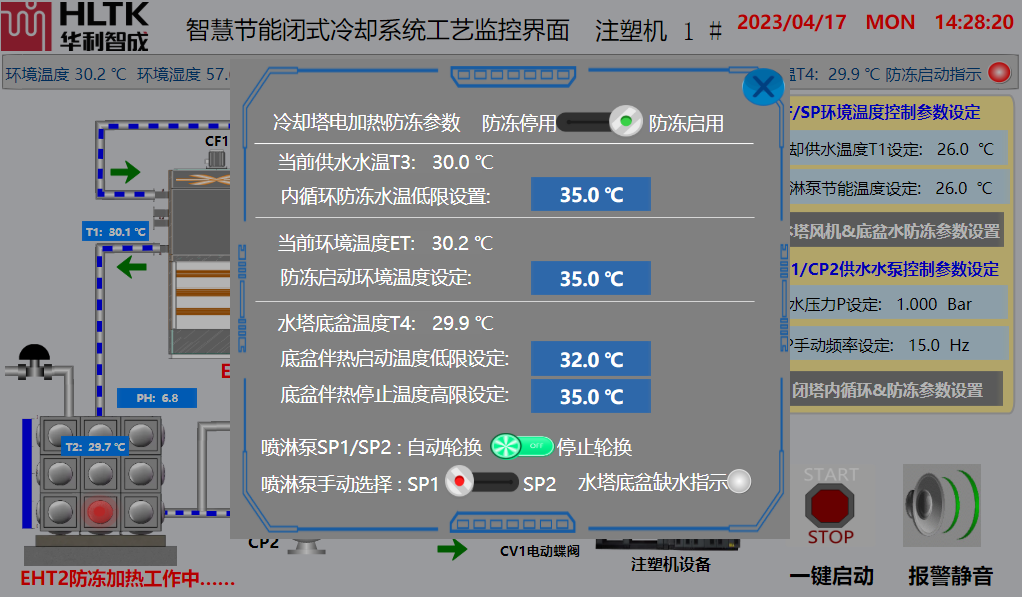 智慧節(jié)能閉式冷卻系統(tǒng)工藝監(jiān)控界面注塑機(jī)